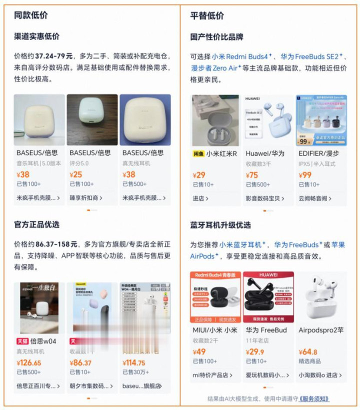 值得一提的是,AI在比对海量商品时会自动剔除评价差、销量低的同款,提升推荐的可信度,进一步增强了购物体验。