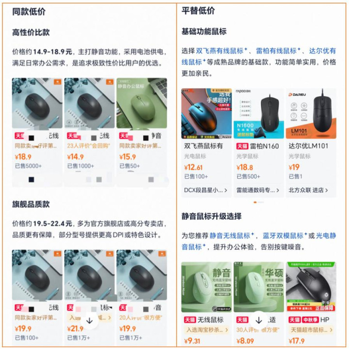 而平替低价区域则会精准标注其他品牌的具体型号,价格优势显著。