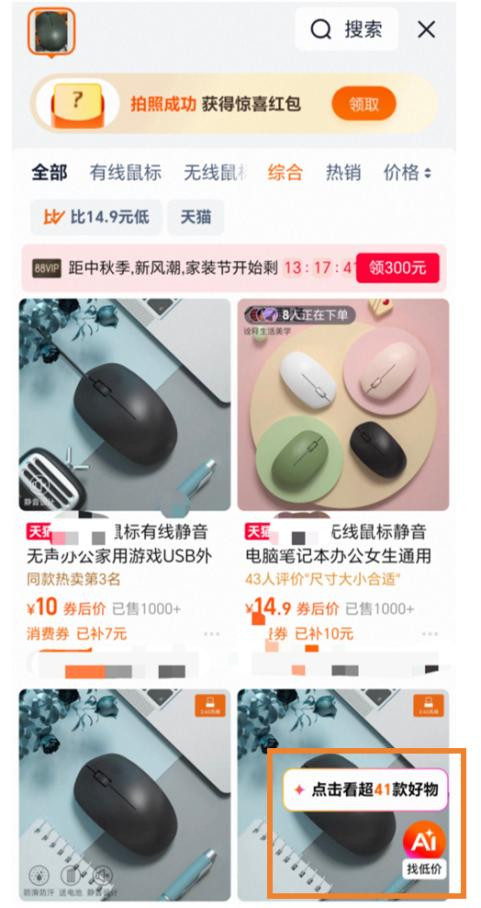 传统比价需经历“拍照→手动搜索→翻页对比”等多步骤,而“AI找低价”将流程压缩至两步,即拍照+点击,大幅降低用户操作成本。